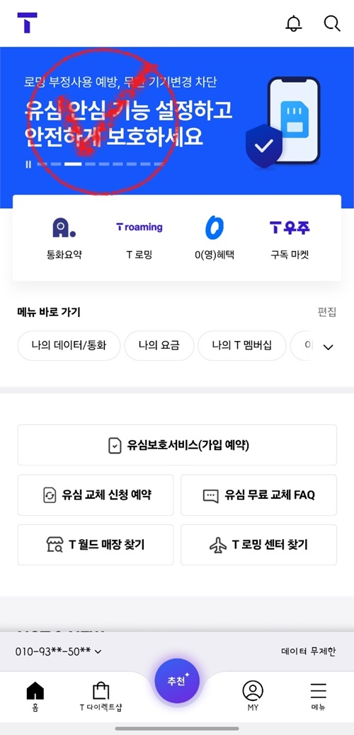 - 고객님의 가입 시점에 유심보호서비스가 휴대폰에 적용됩니다.